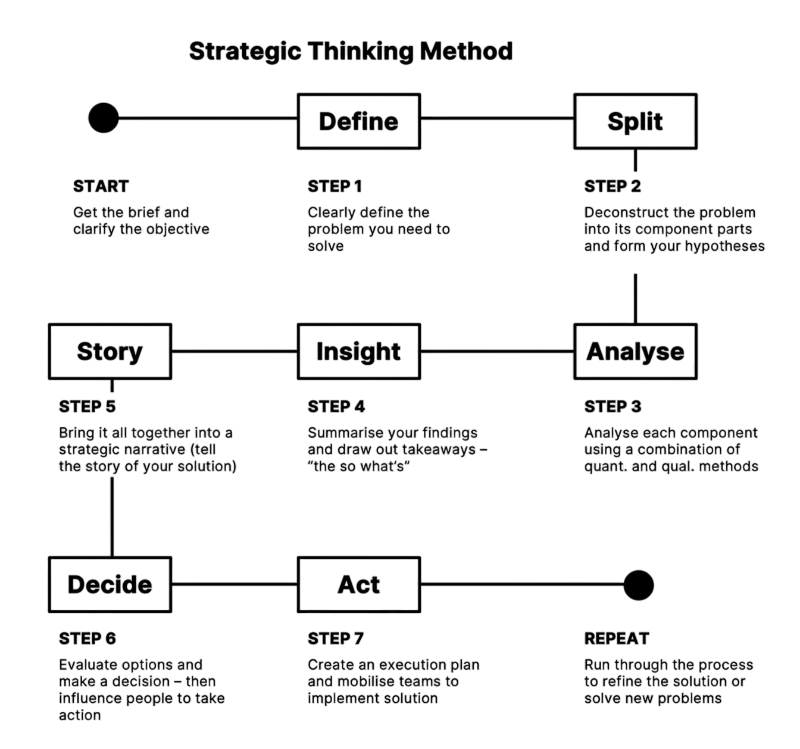 These are structured within the Strategic Thinking framework, which is a simple 7 step process to create a strategy.