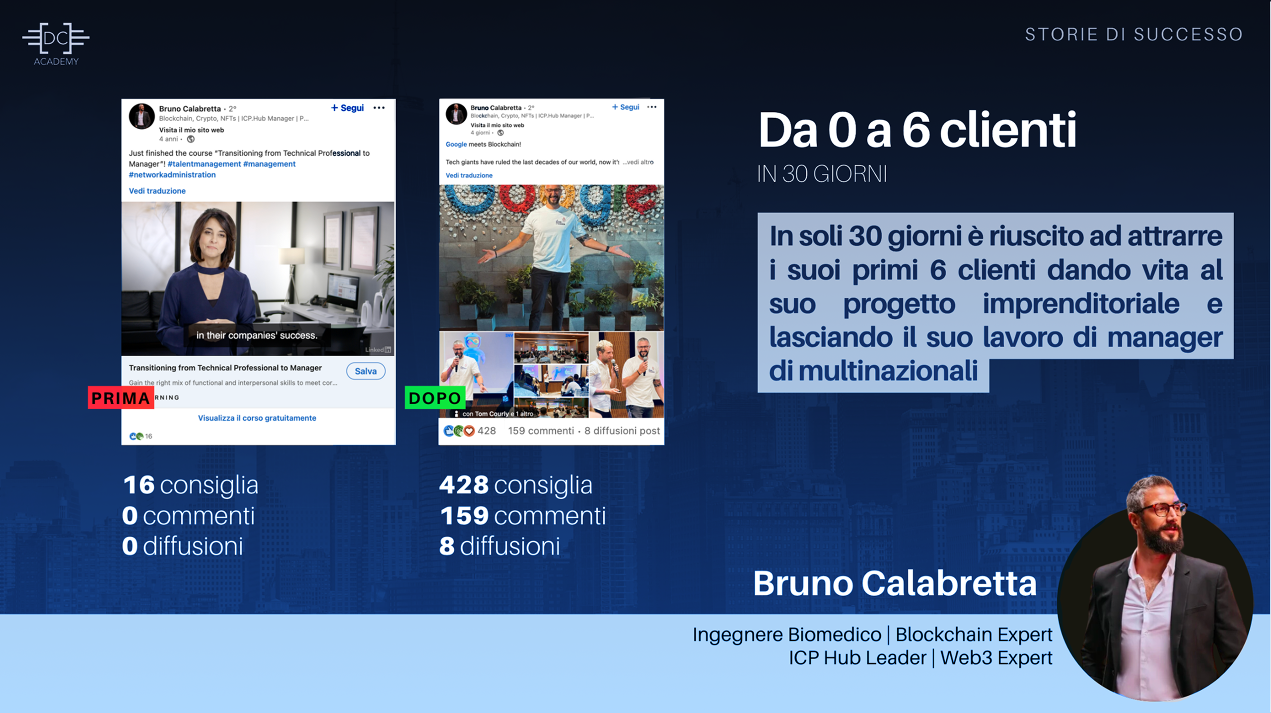 Ho finito, non ti ho voluto raccontare queste cose per farti vedere quanto sono “bravo” ma per farti capire quanto LinkedIn mi abbia stravolto la vita e che quello che ti racconterò non è quello che fanno tantissimi formatori online che vendono aria fritta ma solo quello che come IMPRENDITORE ho messo, e continuo a mettere in pratica, da orami tanti anni.