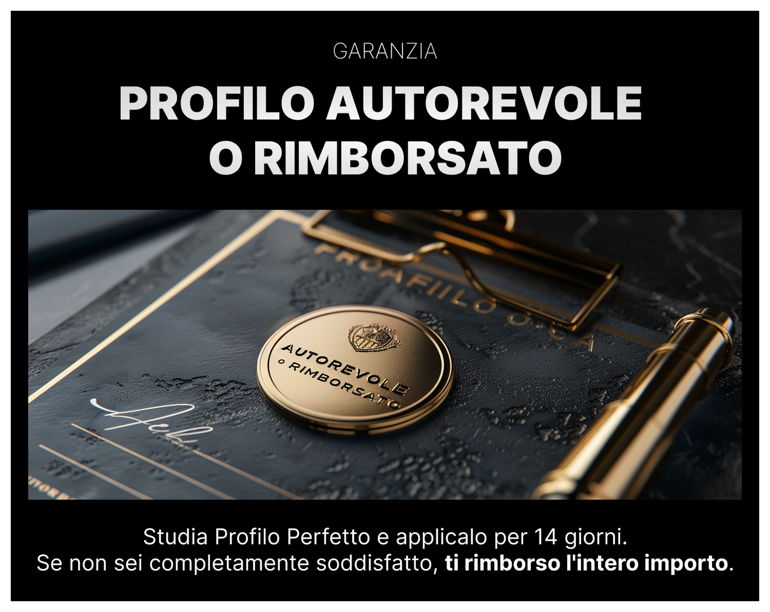 Profilo Perfetto è il metodo semplice e immediato per farti percepire da subito come un’autorità nel tuo settore e iniziare ad attirare clienti di alto livello, senza dover rincorrere nessuno.